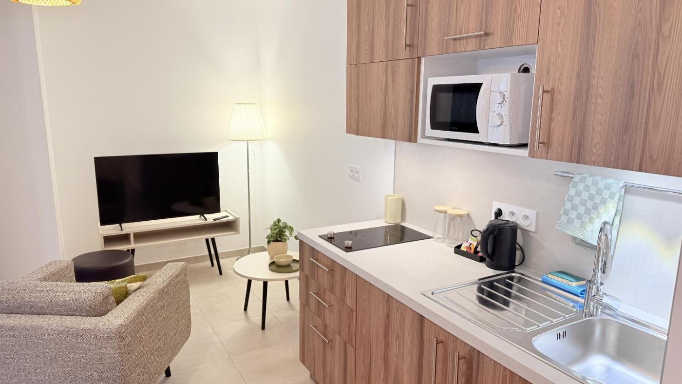 Studio. Featuring free toiletries and bathrobes, this studio includes a private bathroom with a walk-in shower and a hairdryer. In the fully equipped kitchen, guests will find a stovetop, a refrigerator, kitchenware and an oven. This studio has air conditioning, a tea and coffee maker, flat-screen TV, as well as chocolate for guests. The unit has 1 bed. ;