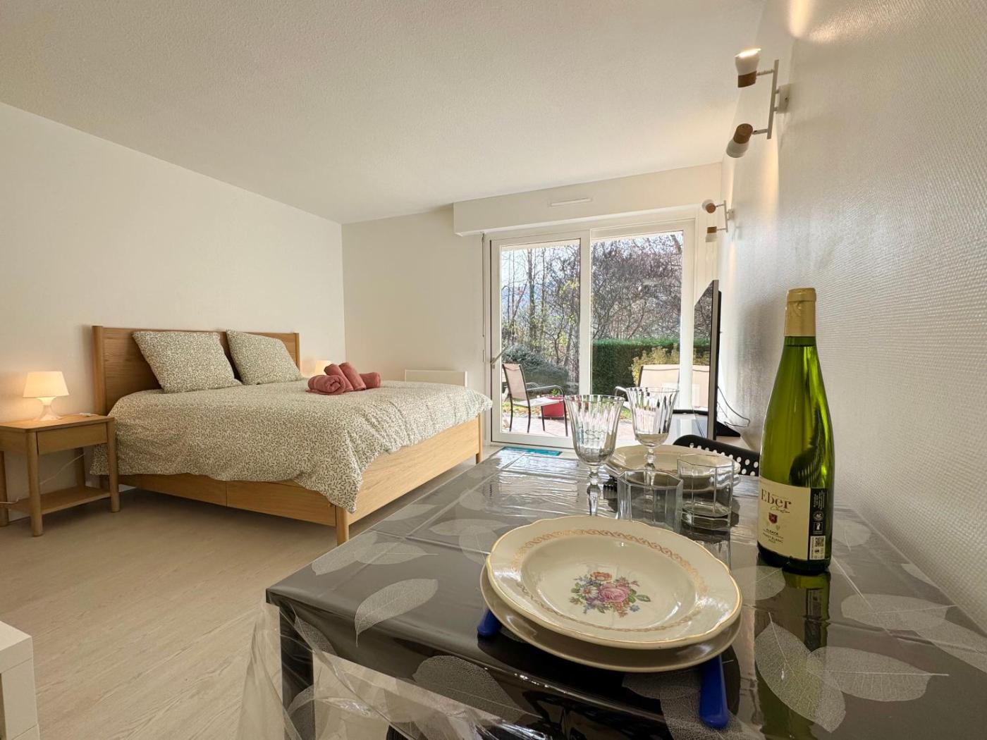 Studio - Vue sur Montagne. The fully equipped kitchen has a stovetop, a refrigerator, a dishwasher and kitchenware. The studio features a washing machine, a private entrance, a terrace with garden views as well as a private bathroom boasting a shower. The unit has 1 bed.