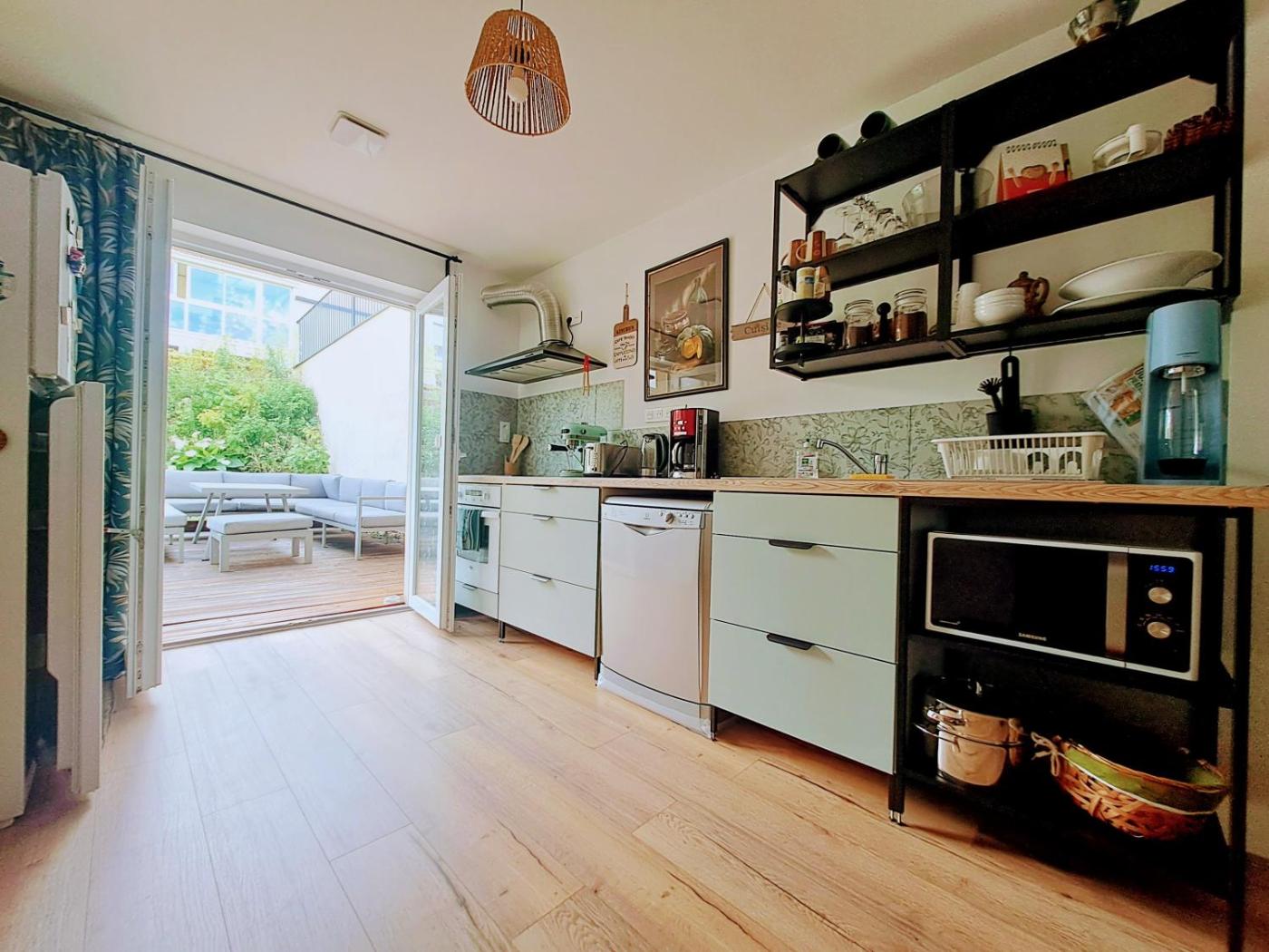 Appartement 1 Chambre. Boasting a private entrance, this apartment also features 1 bedroom, a seating area and 1 bathroom with a walk-in shower and a hairdryer. Meals can be prepared in the well-fitted kitchen, which has a stovetop, a refrigerator, a dishwasher and kitchenware. Featuring a terrace with garden views, this apartment also features a coffee machine and a flat-screen TV. The unit has 1 bed.