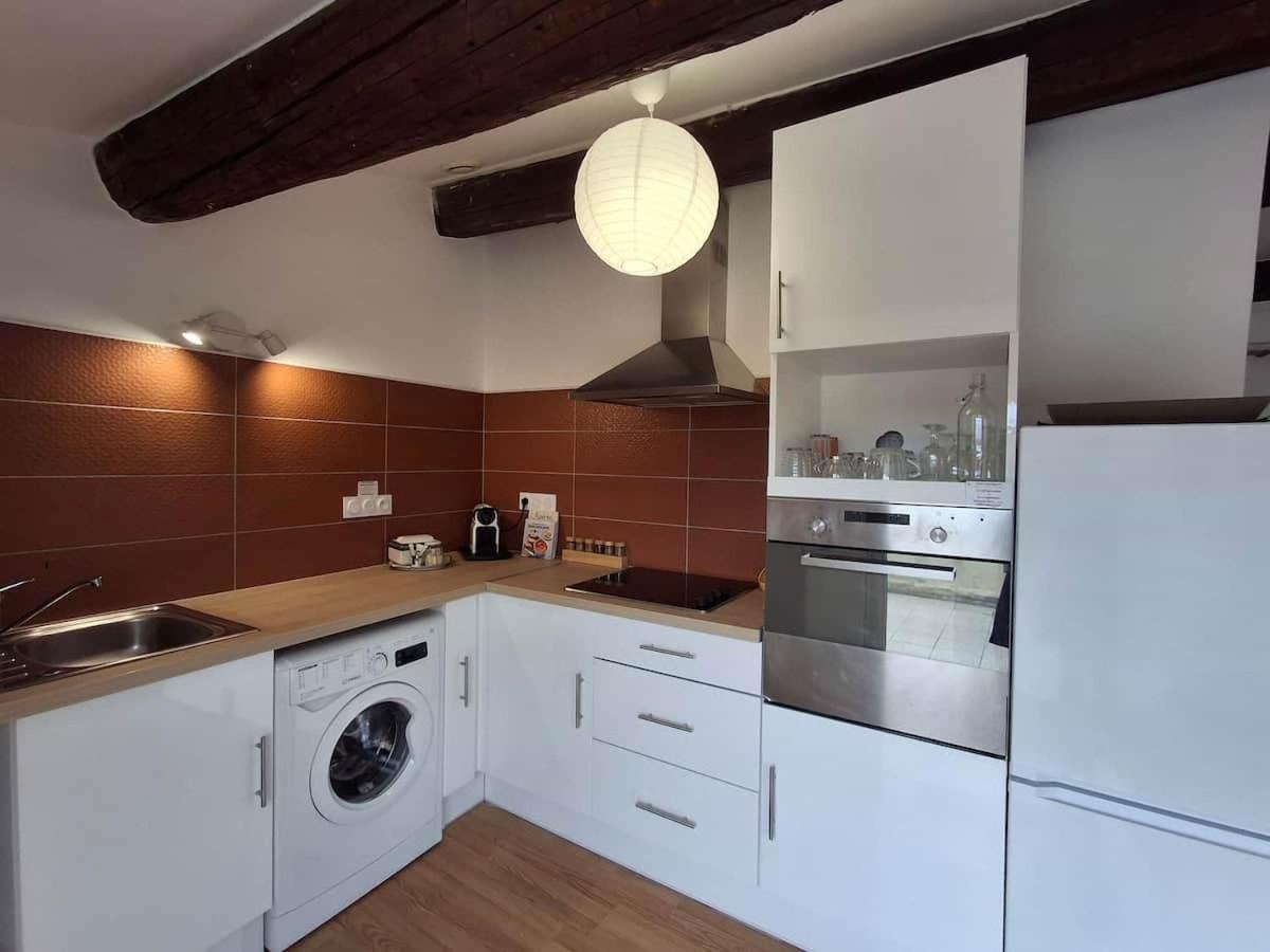 Appartement avec Terrasse. The well-fitted kitchenette features a refrigerator, kitchenware, an oven and a tea and coffee maker. This air-conditioned apartment has a washing machine and heating.