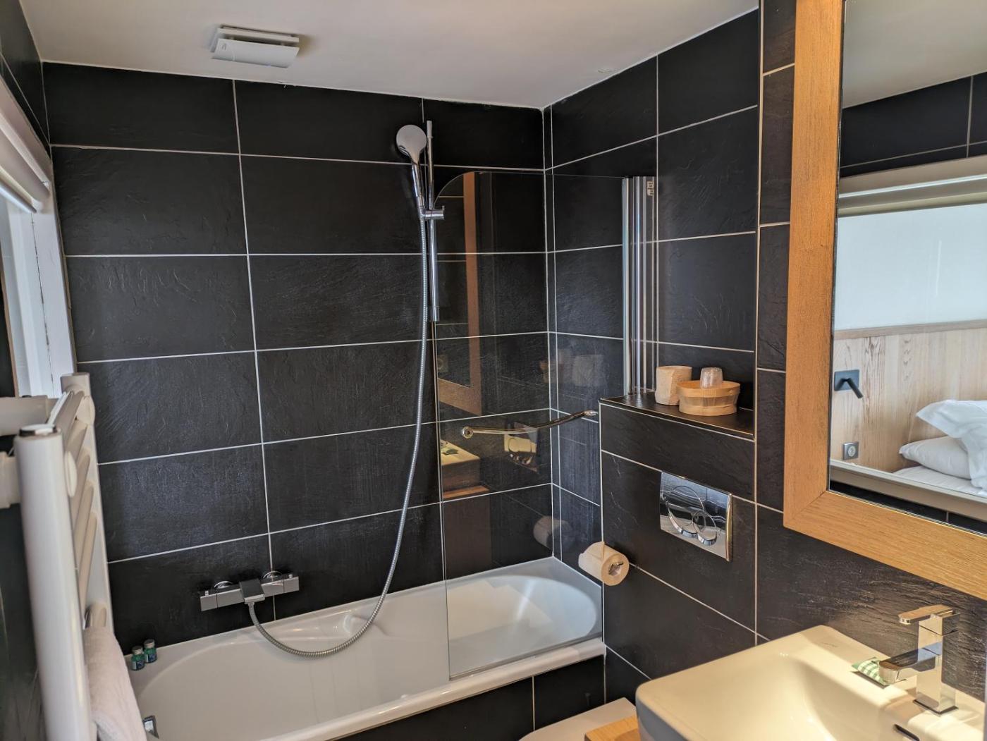 Vous bénéficierez d’une salle de bains privative entièrement équipée avec une baignoire et des articles de toilette gratuits.