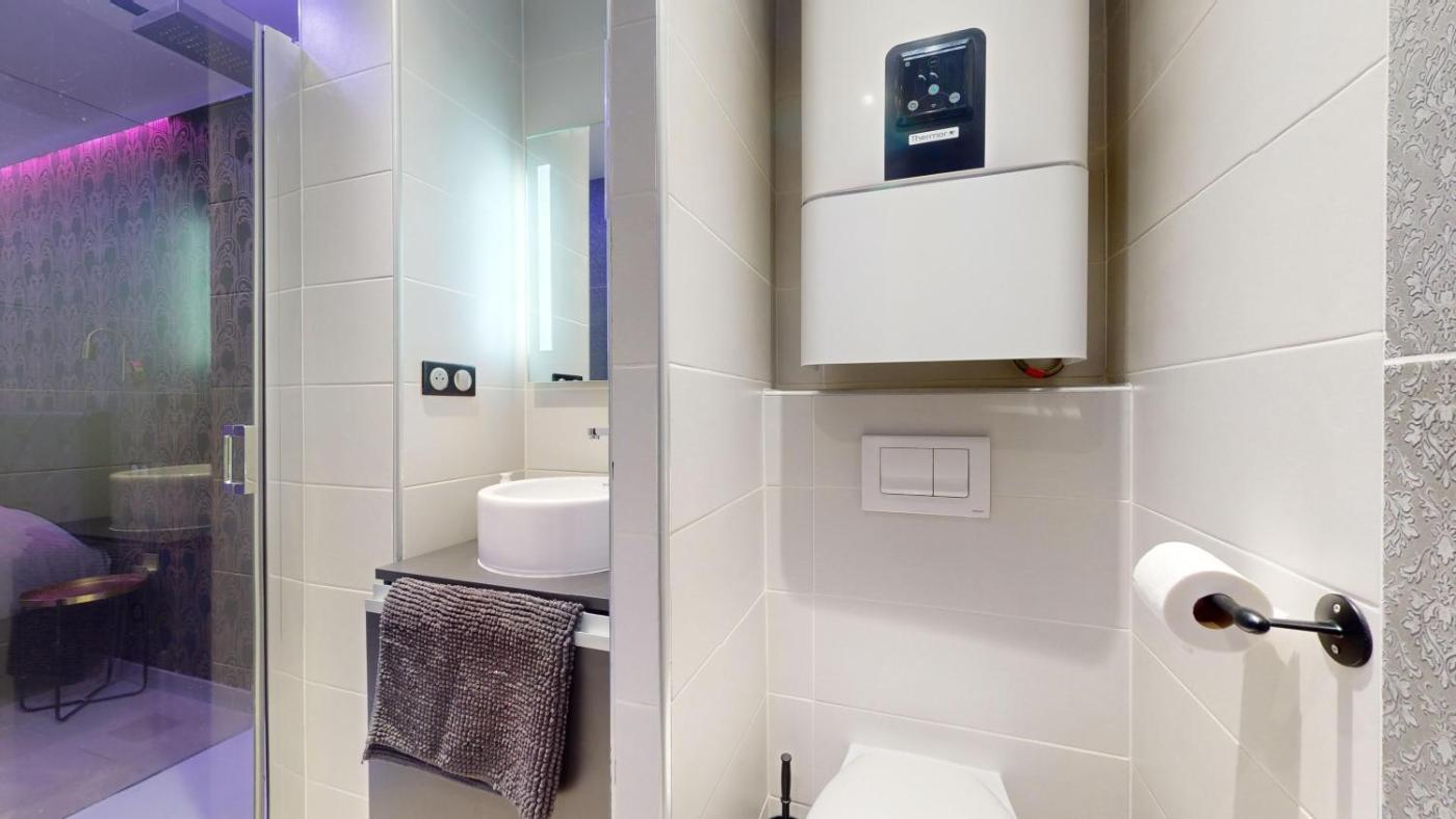 Appartement 1 Chambre. The air-conditioned apartment has 1 bedroom and 1 bathroom with a walk-in shower and a hairdryer. In the well-fitted kitchen, guests will find a stovetop, a refrigerator, kitchenware and a microwave. The unit features a coffee machine, city views, a terrace and winechampagne is available for guests. The unit has 1 bed.