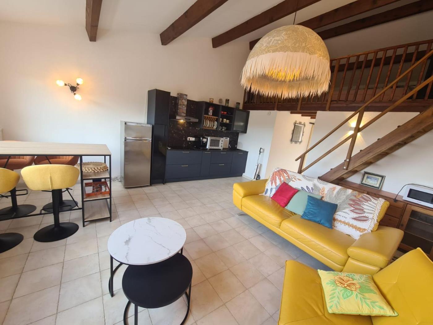 Appartement 2 Chambres - Vue sur Mer. Featuring a private entrance, this air-conditioned apartment is comprised of 1 living room, 2 separate bedrooms and 1 bathroom with a shower and a hairdryer. The well-fitted kitchen features a stovetop, a refrigerator, kitchenware and an oven. The spacious apartment offers a flat-screen TV, a washing machine, a coffee machine, a seating area as well as sea views. The unit offers 3 beds.