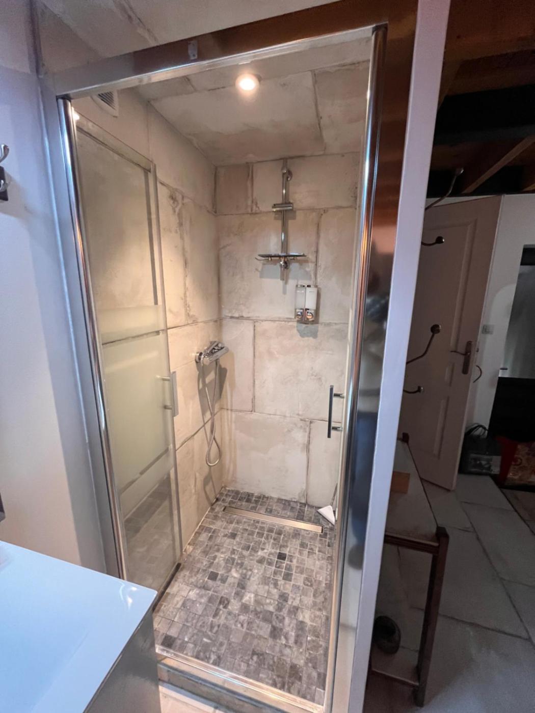 Chambre Double. The well-equipped kitchenette features a stovetop, a refrigerator, kitchenware and a microwave. The spacious double room offers air conditioning, a private entrance, a terrace with ancourtyard view as well as a private bathroom featuring a shower. The unit offers 2 beds.