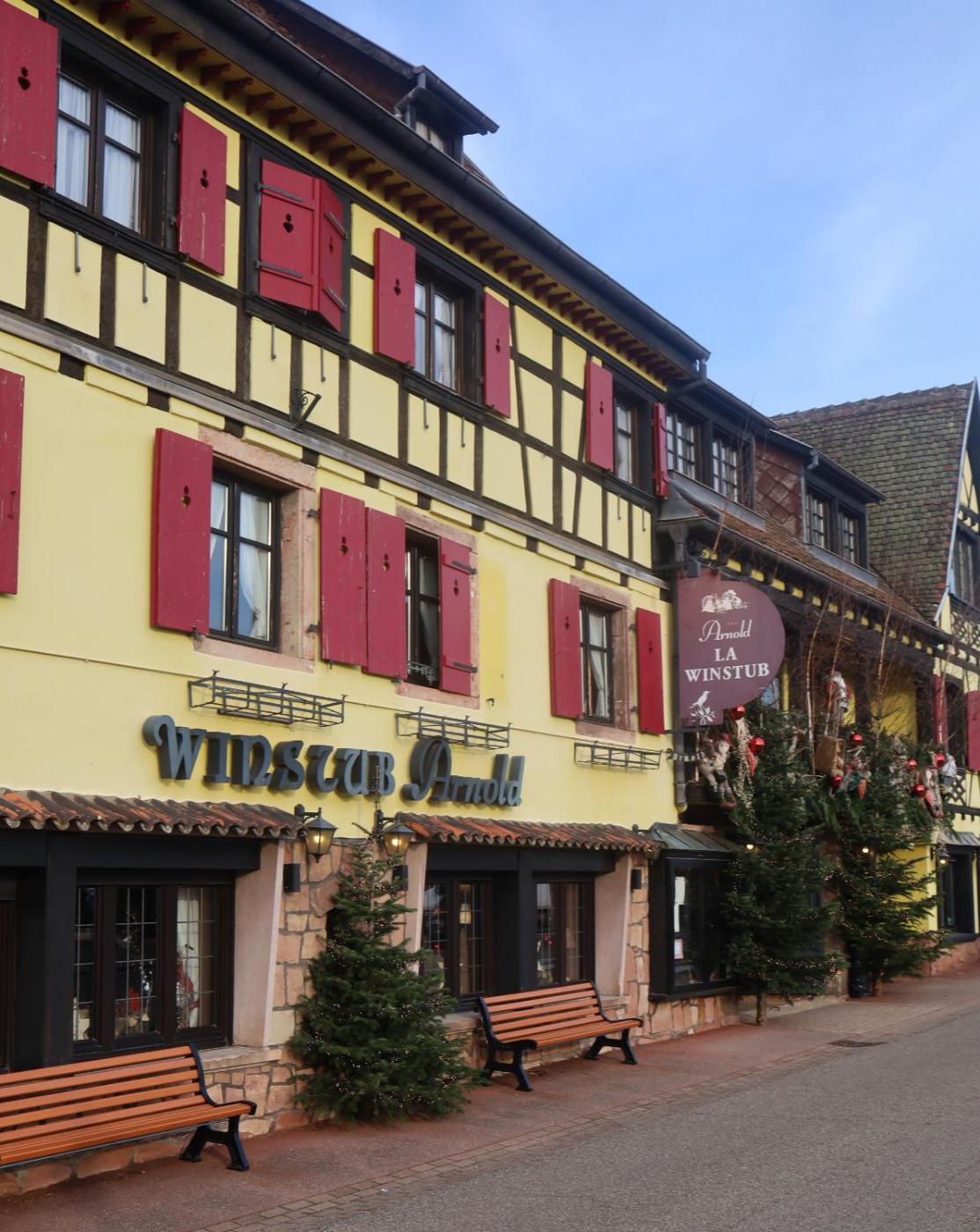 Le restaurant de lHôtel Arnold se trouve en face de létablissement. La Winstub, une ancienne cave à vin, sert des plats maison et une cuisine régionale préparée à partir de produits locaux et de saison.