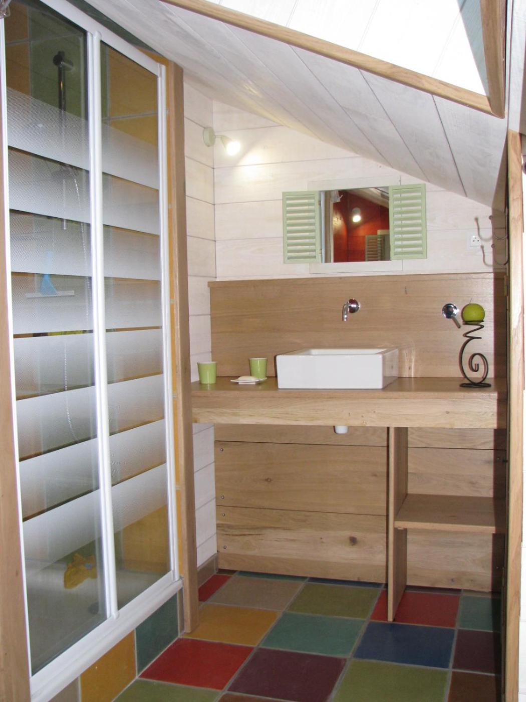 Chambre Familiale avec Salle de Bains Privative. The family room provides a seating area, a wardrobe, as well as a private bathroom featuring a shower and a hairdryer. The unit offers 4 beds.