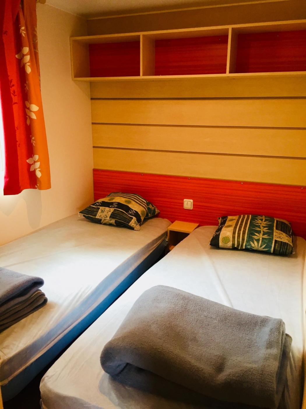 Mobile Home. Boasting a private entrance, this air-conditioned mobile home comes with 1 living room, 2 separate bedrooms and 1 bathroom with a shower. In the well-fitted kitchen, guests will find a stovetop, a refrigerator, kitchenware and a microwave. This mobile home has a coffee machine, a seating area, a TV and a terrace. The unit has 4 beds. ;