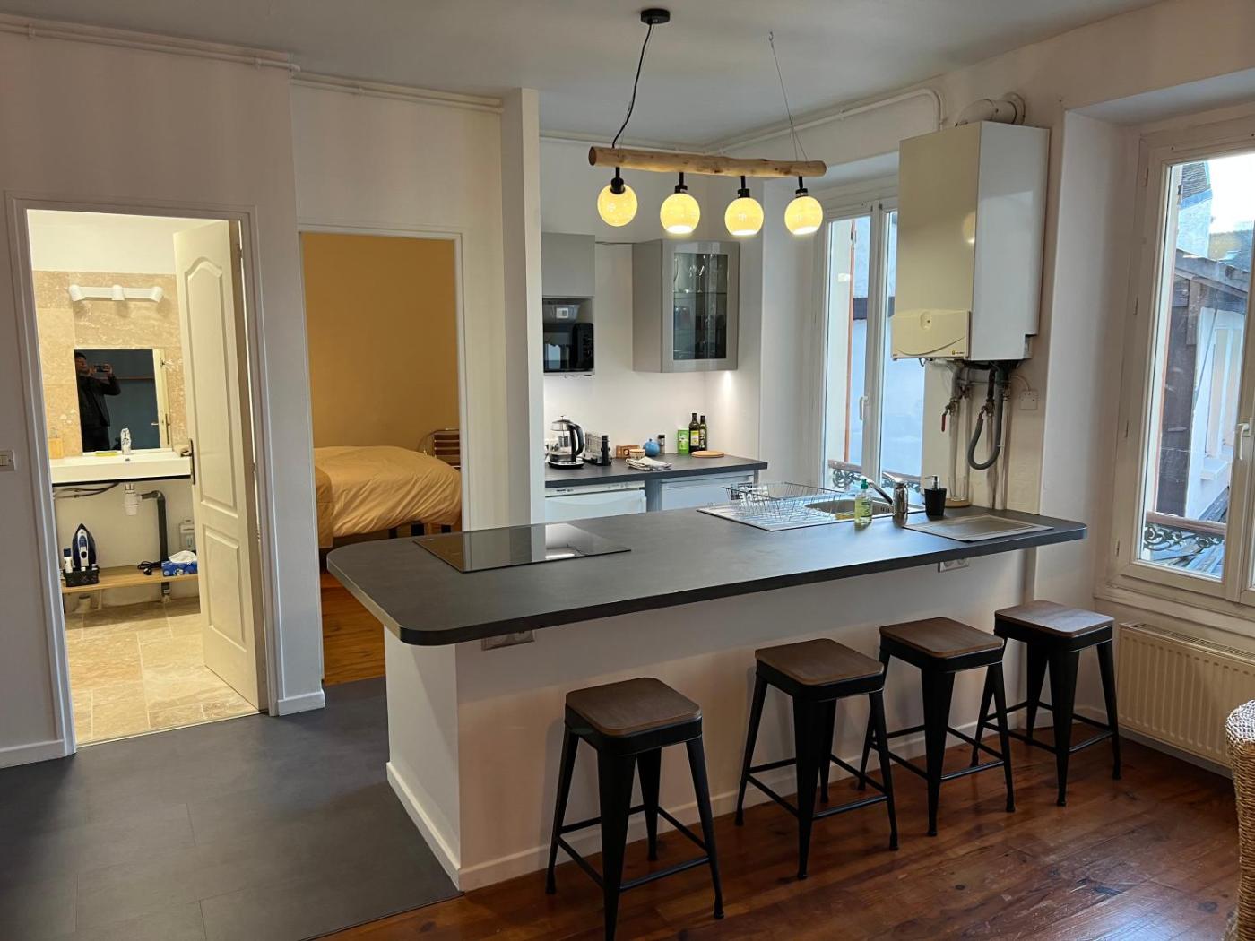 Appartement avec Terrasse. Boasting a private entrance, this air-conditioned apartment features 1 living room, 1 separate bedroom and 1 bathroom with a shower and a hairdryer. The fully equipped kitchen has a stovetop, a refrigerator, kitchenware and a microwave. Featuring a terrace with ancourtyard view, this apartment also features a washing machine and a flat-screen TV with streaming services. The unit has 2 beds. ;