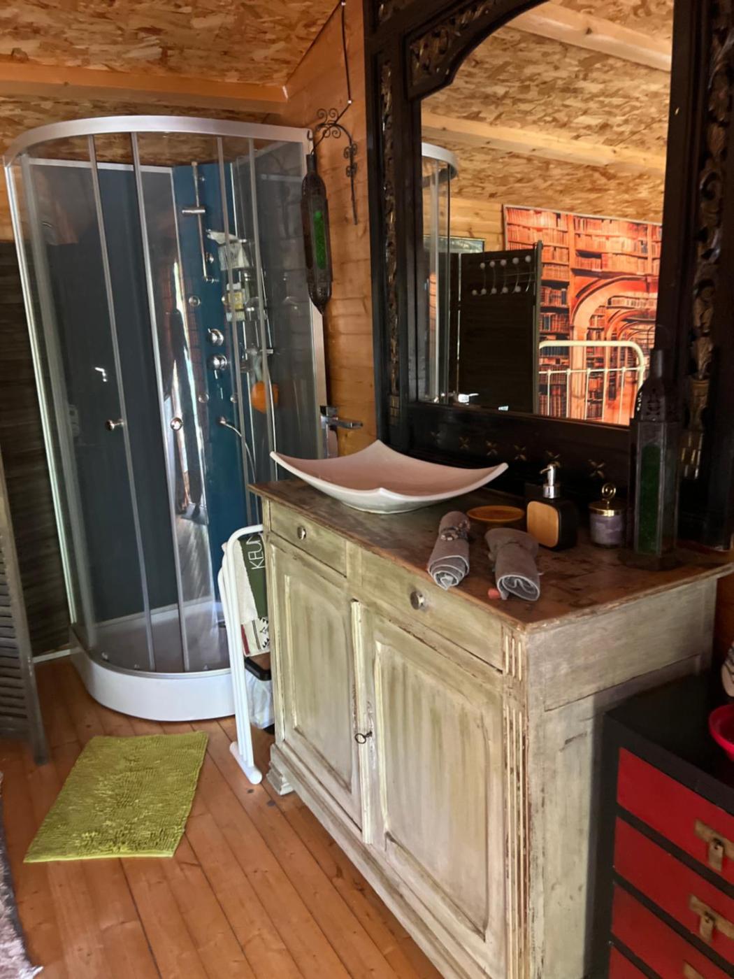 Chambre Double. The double room features air conditioning, a coffee machine, a terrace with garden views as well as a private bathroom boasting a shower. The unit has 2 beds.