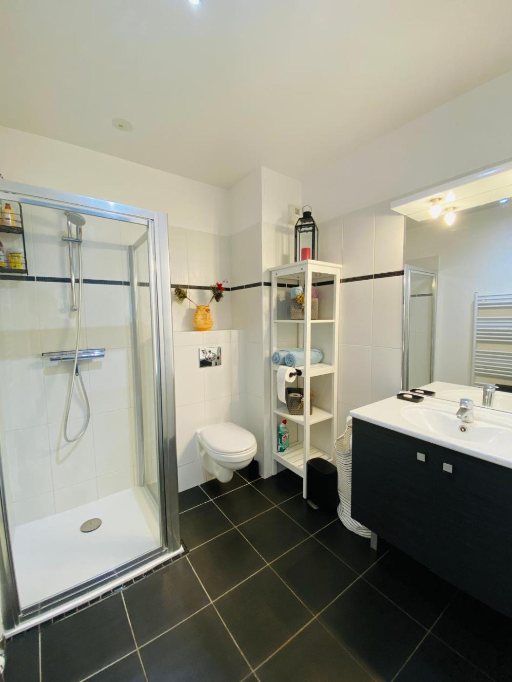 Appartement 1 Chambre. Guests can make meals in the kitchen that features a stovetop, a refrigerator, a dishwasher and kitchenware. The apartment features a washing machine, a private entrance, soundproof walls as well as a terrace with garden views. The unit has 1 bed.