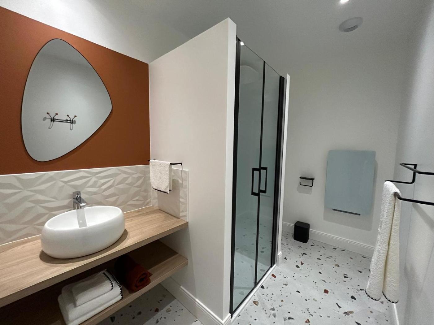 Appartement en Duplex. Boasting a private entrance, this air-conditioned apartment includes 1 living room, 1 separate bedroom and 1 bathroom with a walk-in shower and a hairdryer. In the well-equipped kitchen, guests will find a stovetop, a refrigerator, kitchenware and a microwave. This apartment has a washing machine, soundproof walls, flat-screen TV, as well as chocolate for guests. The unit has 2 beds.