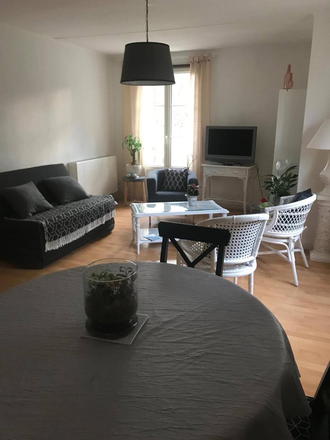Appartement 1 Chambre. Boasting a private entrance, this apartment includes 1 living room, 1 separate bedroom and 1 bathroom with a shower and a hairdryer. In the fully equipped kitchen, guests will find a stovetop, a refrigerator, kitchenware and an oven. The apartment offers a flat-screen TV with satellite channels, a washing machine, soundproof walls, a tea and coffee maker as well as garden views. The unit has 2 beds.