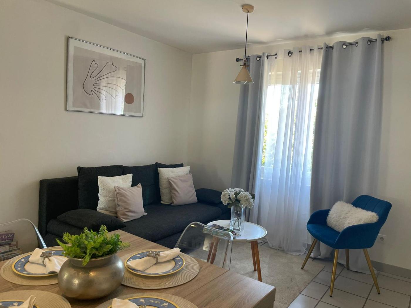 Appartement 2 Chambres. Guests will find a stovetop, a refrigerator, kitchenware and an oven in the kitchen. The apartment also provides guests with a barbecue. The spacious air-conditioned apartment provides a flat-screen TV with streaming services, a washing machine, a private entrance, a tea and coffee maker as well as garden views. The unit offers 3 beds.