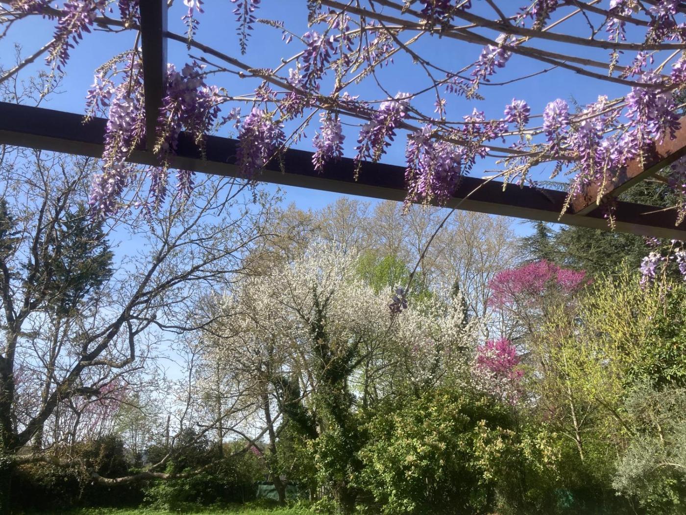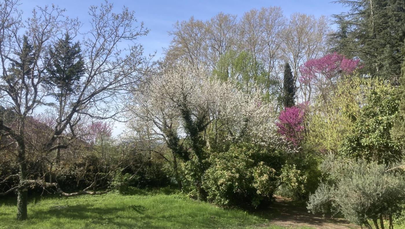 Chambre Double - Vue sur Jardin. The double room provides a wardrobe, parquet floors, as well as a private bathroom featuring a walk-in shower and a hairdryer. The double room features heating, an outdoor dining area and mountain views. The unit offers 1 bed.