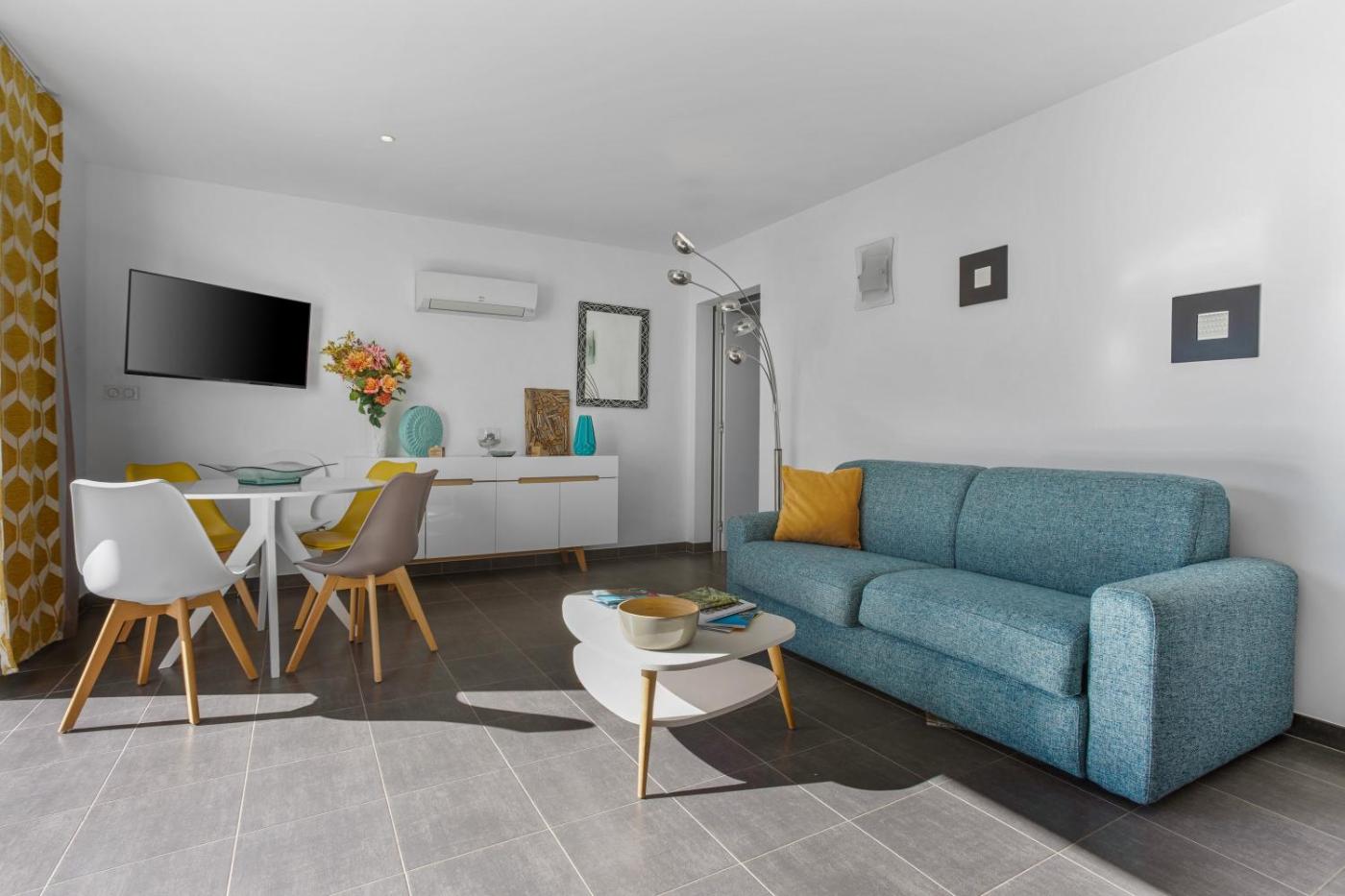 Appartement 2 Chambres Deluxe - Vue sur Océan. Featuring a private entrance, this air-conditioned apartment consists of 1 living room, 2 separate bedrooms and 2 bathrooms with a shower and a hairdryer. Guests can make meals in the kitchen that is equipped with a dishwasher, kitchenware, an oven and a microwave. Among the room amenities are a washing machine, a coffee machine, a high chair for children as well as a patio and sea views. The unit offers 3 beds.