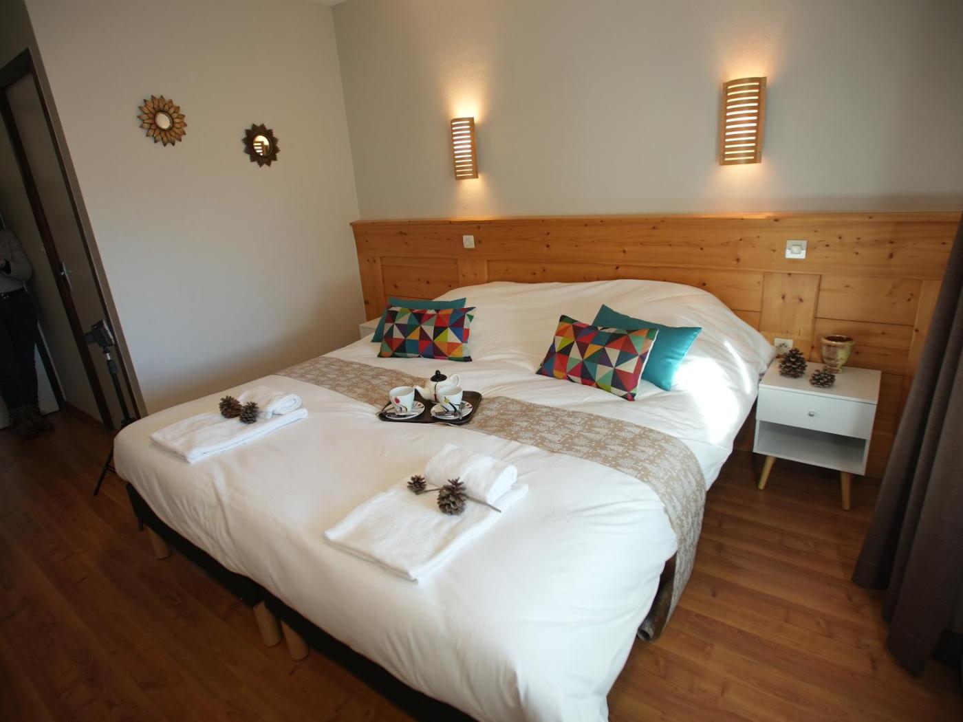 Chambre Lits Jumeaux. Cette chambre lits jumeaux dispose dune salle de bains privative, dune armoire, de parquet et dun balcon. Le logement comporte 2 lits. ;